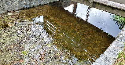 Beyond the drain, runoff travels by pipe, conduits or other open channels. The images are pipes on a low rain day versus a heavy rain. Notice how much more power and volume the water has on rainy day.